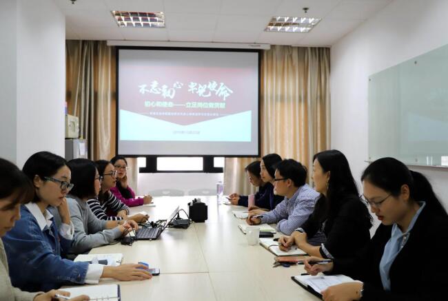 2019年10月22日,计算机学院管理党支部在理科大楼B714召开“初心和使命——立足岗位做贡献”专题组织生活会。院长助理兼办公室主任窦亮、办公室副主任金健等全体管理条线教师也特邀参加会议,共同聆听党委副书记(挂职)王莉萍的专题党课,并开展先进人物事迹交流分享。会议由管理党支部书记、专职组织员韩璐主持。