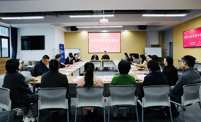宣布会上,院长周爱民和院党委书记余佳也先后发言。他们对陈蕾同志在任期内的辛勤付出和卓越奉献表示由衷感谢,祝福她未来的工作生活顺利圆满;他们对徐飞同志的任职表示热烈欢迎,希望他在新的岗位上发挥作用,为学院各项事业发展作出新贡献。