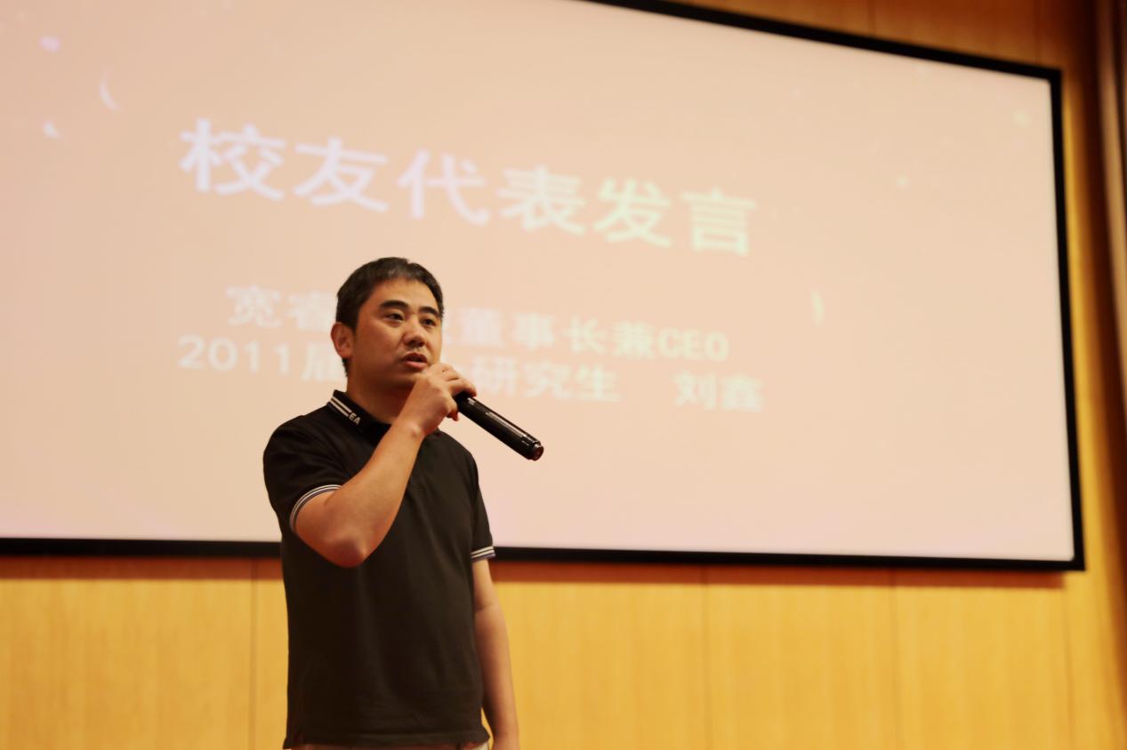 2011届校友代表刘鑫带来他的励志故事,并送上毕业祝福。刘鑫分享了自己的读书和工作生涯,他表示好奇心可以让我们在很多新的领域保持求知的欲望,从而对所做的事情保持热爱;专注可以让我们把有限的精力更好地投入到一件事情中;“千里马常有,而伯乐不常有”,维系“螺旋式上升”的信任关系,一定能让我们找到职业生涯的伯乐,更好地获得成长;重视沟通和聆听,好的聆听可以站在对方的角度理解对方的想法,更好地找到双方的平衡点,有利于协同发展。