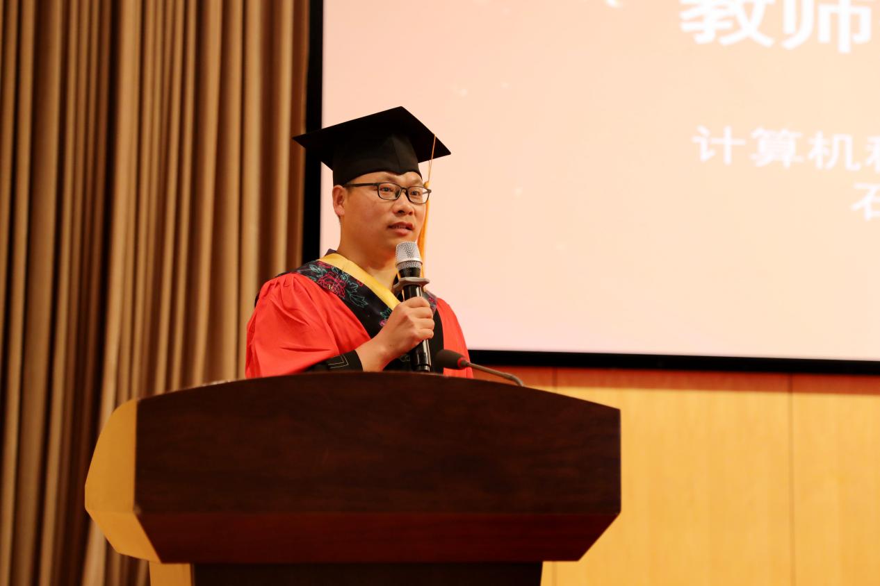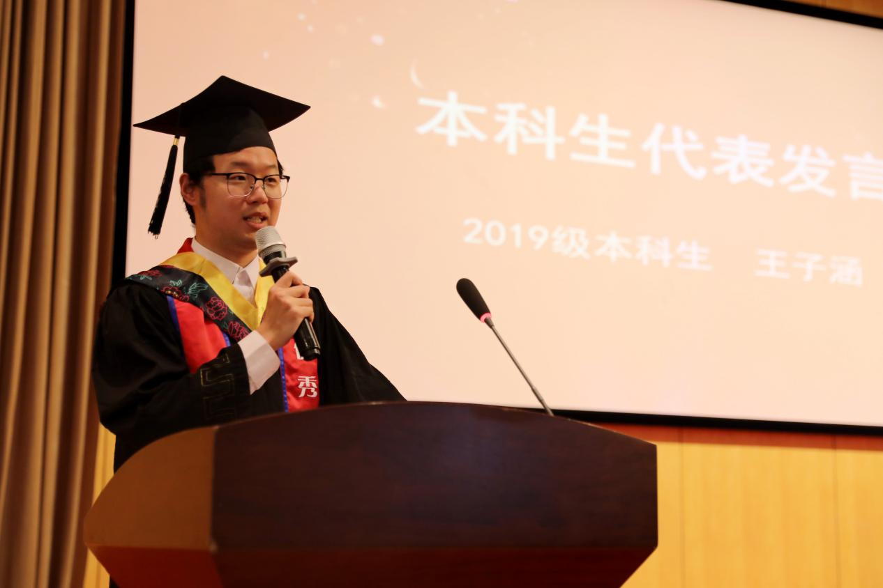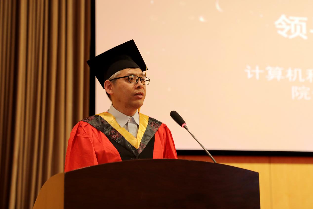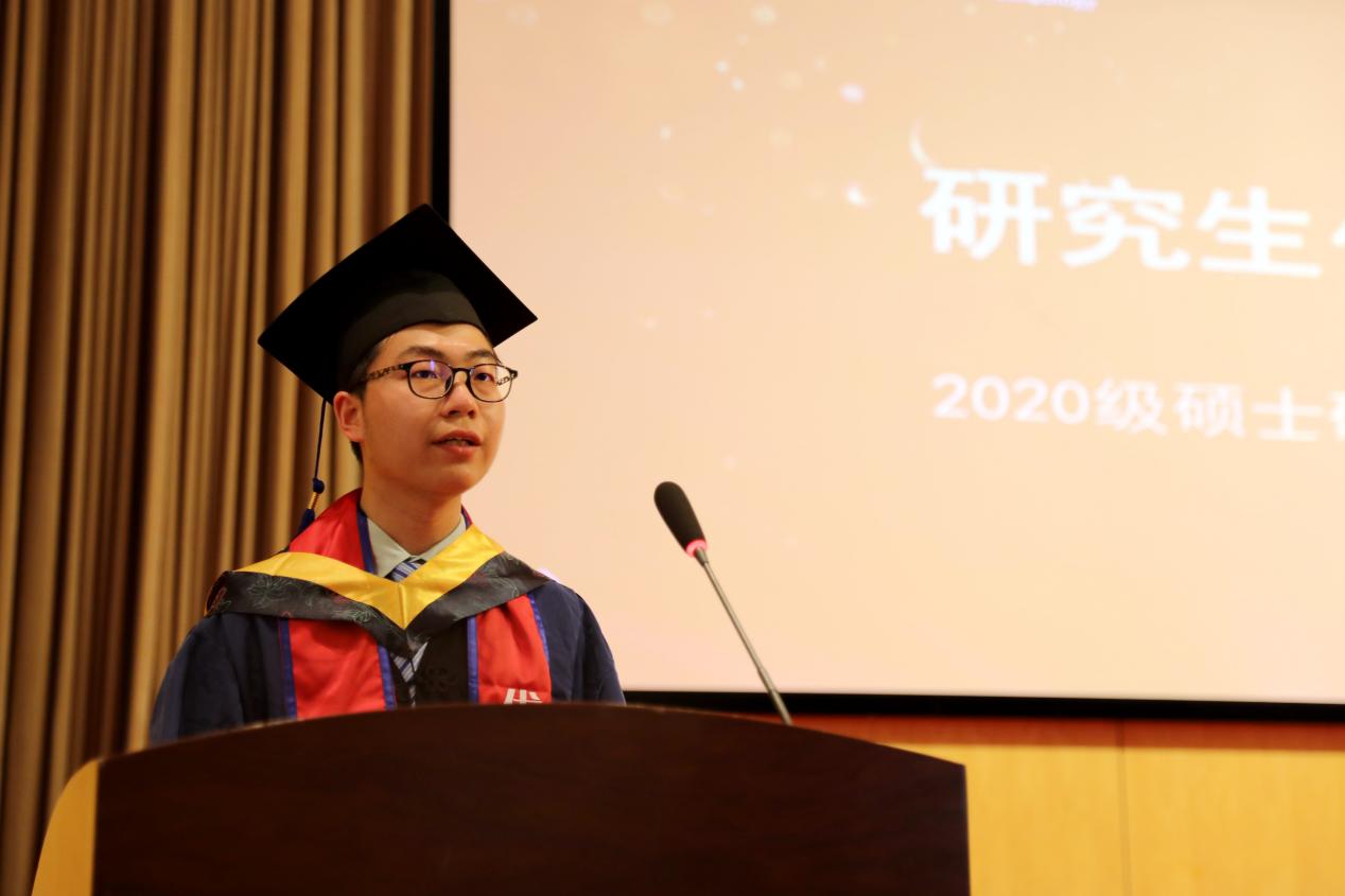 本科优秀毕业生代表王子涵、硕士优秀毕业生代表钱栋炜依次发言。计算机行业处于日新月异的变革当中,王子涵同学鼓励大家,用华师大教给我们的知识、学识和眼界作为利剑,向未知进发,勇敢前进,“人类的赞歌是勇气的赞歌”。钱栋炜同学首先代表全体毕业生向一直关心爱护大家的老师家长表示由衷的感谢,也希望大家不负初心,不忘本心,不负时代,不负使命,坚持梦想,书写自己的辉煌,“报定初心终不悔,一蓑烟雨任平生”,只要不灰心、不动摇、坚定信念,终将抵达胜利的彼岸。