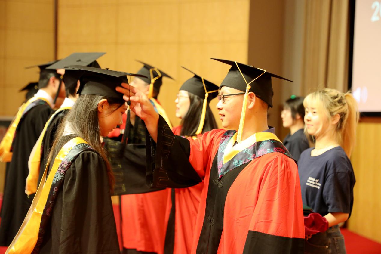 余佳、周爱民、贺樑、陈蕾、石亮为毕业生拨穗并颁发学位证书。