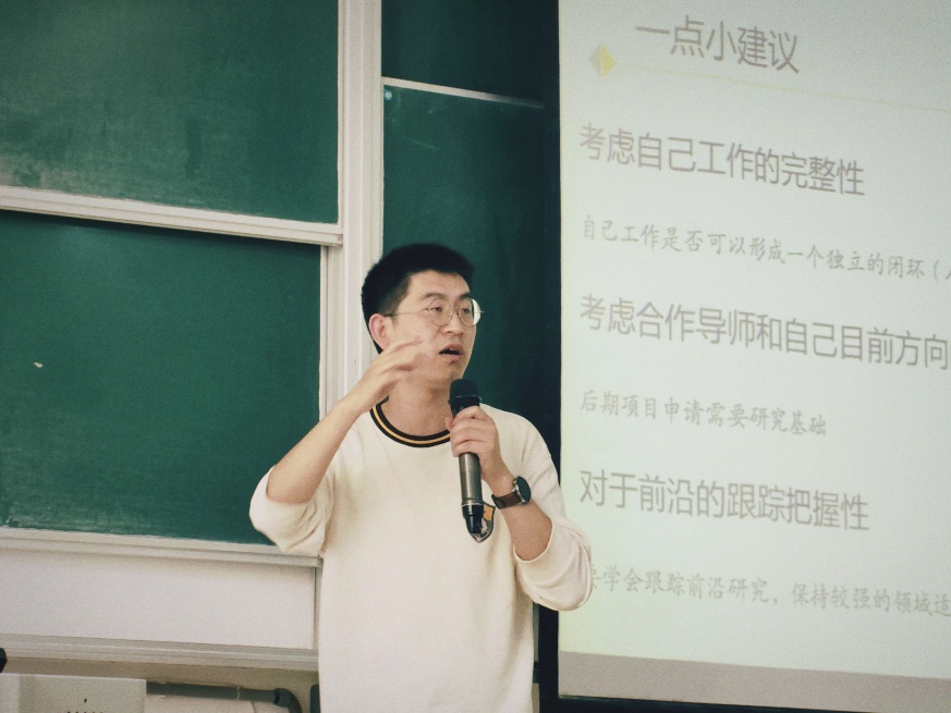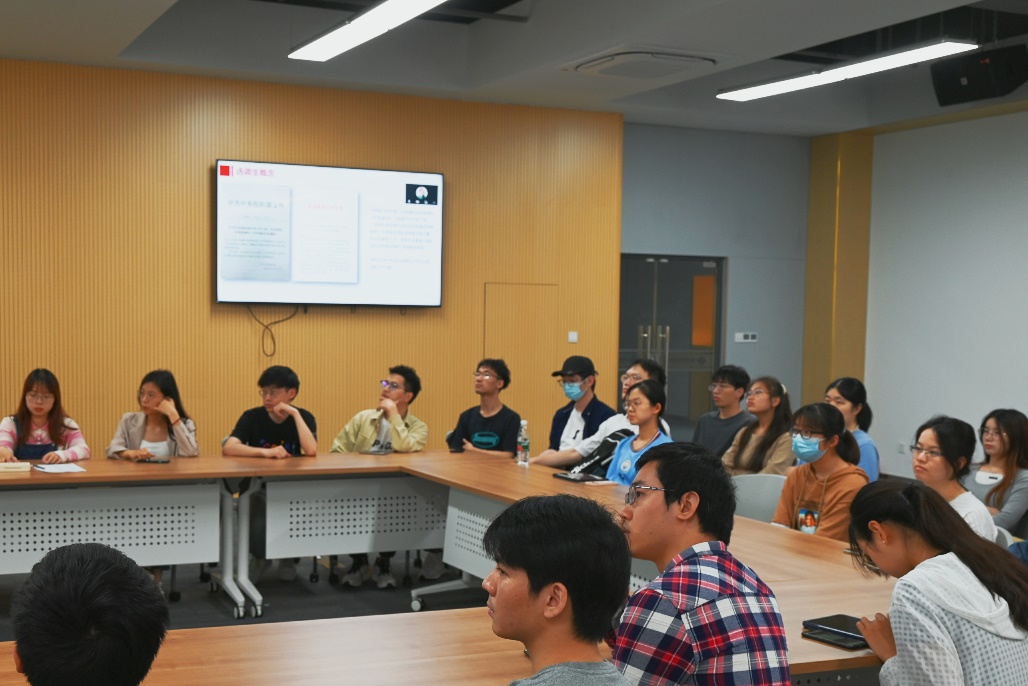 李俊诚就读博后的就业环境、博士申请困难程度、读博的方向选择、关键时间节点等问题进行了说明,并针对申博读博流程的不同环节给出了切实中肯的建议。吴兴蛟围绕“千里之行始于足下”这一主题,结合自己的博士后经历,强调了在深造过程中自我锤炼与团队协作并驾齐驱的重要性。王楠为有出国深造意向的同学,详细全面地梳理了国家留学基金委申请流程及注意事项。吕熠娜面向博士就读期间的科研学习规划这一问题,从研究领域选定、学术视野拓展和未来就业准备等方面展开了介绍。