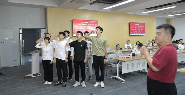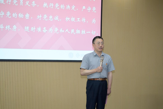 座谈会上,院优秀党务工作者、退休党支部书记葛友昌老师带领学院新发展的预备党员庄重宣誓。