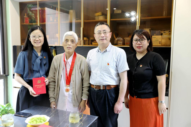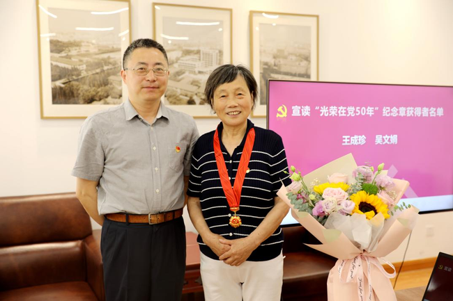 学院党委书记余佳首先宣读了“光荣在党50年”名单,我院退休教工党员吴文娟、王成珍两位老师荣获纪念章。考虑到两位老同志年事已高,院党委已提前向两位老同志颁发纪念章。