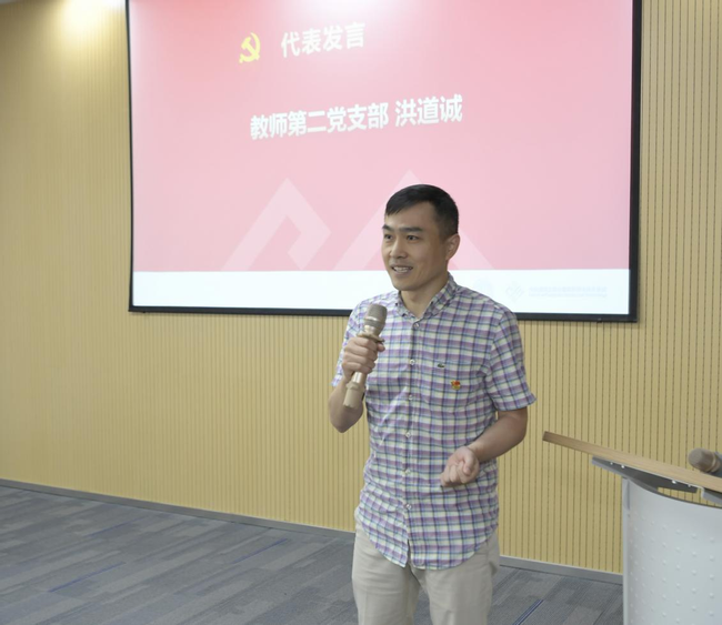 座谈会上,学院党委为入党时间逢五逢十的教工和学生党员集体过政治生日。教师第二党支部洪道诚同志在发言中分享了自己入党20年来的成长历程,以及党员身份给予他的充实感和使命感,表示要牢记入党初心,永葆共产党员先进本色。