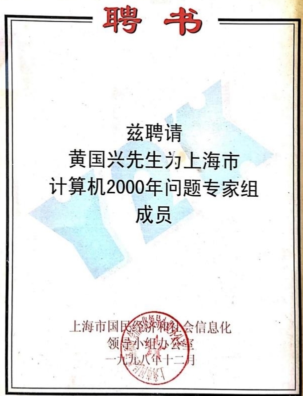 上海在全国属于计算机系统在各行各业中应用比较普遍的城市,市政府也充分认识到了计算机2000年问题的严重性以及解决这一问题的紧迫性、复杂性。在国务院通知下发后不久,就由当时的上海市国民经济和社会信息化领导小组办公室组织召开了包含全市范围内各行业代表参加的研究解决计算机2000年问题的大会,会上聘请了各行业的技术人员和管理人员作为“计算机2000年问题专家组成员”。专家组中的成员包括上海市科委、大型国企、大学和研究所等单位,这些人组成了管理协调、技术研究和宣传联络等小组并开始工作,上海市科学技术委员会主任张其标、同济大学校长吴启迪任组长。我也有幸成为专家组中技术研究和咨询组中的一员(图1)。