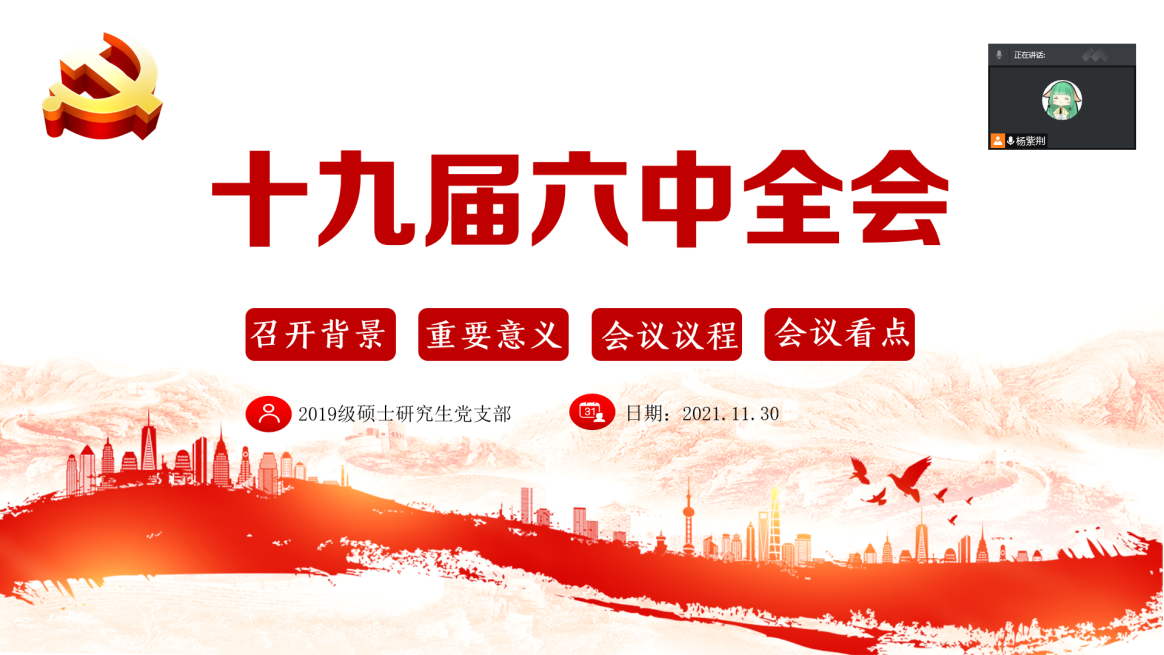 19级专硕党支部闫训天,此次会议全面总结党的百年奋斗的重大成就和历史经验,山河岁月,换了人间。旧中国饱受欺凌,先辈们浴血奋战、百折不挠,推翻三座大山,实现民族独立、人民解放;在历史转折关头,党团结带领人民,解放思想、锐意进取,以改革开放的关键一招,让中国大踏步赶上时代……百年风雨,初心如一。步入新征程,我们作为新时代的研究生,更要关注这波澜壮阔的百年史诗,学习中国共产党的伟大精神,在这幅复兴长卷中写下属于我们的绚丽篇章!