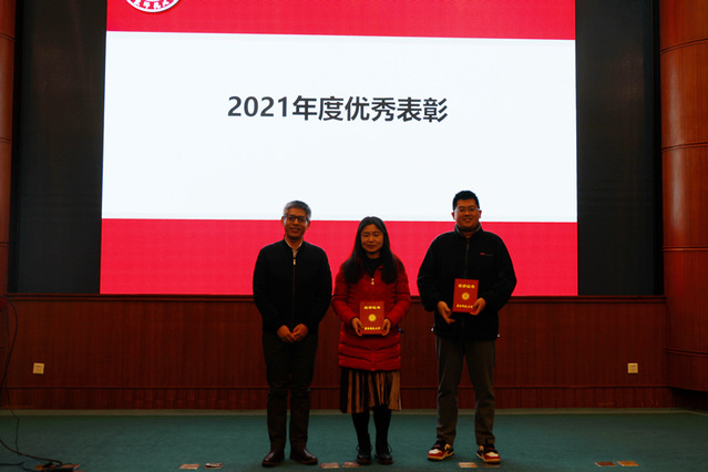 党委书记王长波宣读2021年度计算机学院先进表彰决定,“视觉与媒体智能”和“语言认知和知识计算”团队获评优秀科研团队;肖春芸等9位教师获评学校优秀;谢瑾奎等15位教师获评学院优秀。学院首次设立“师德先进”奖项,发挥示范引领作用,形成优良的师德师风建设氛围和风清气正的育人环境,贺樑教授获此殊荣。