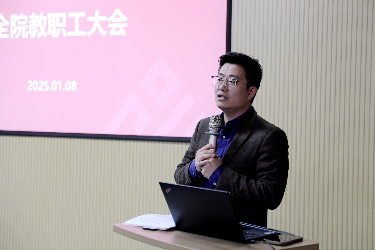 2025月1月8日下午,威廉官网中国官方网站在理科大楼B112召开全院教职工大会,学院全体教职工参加会议。