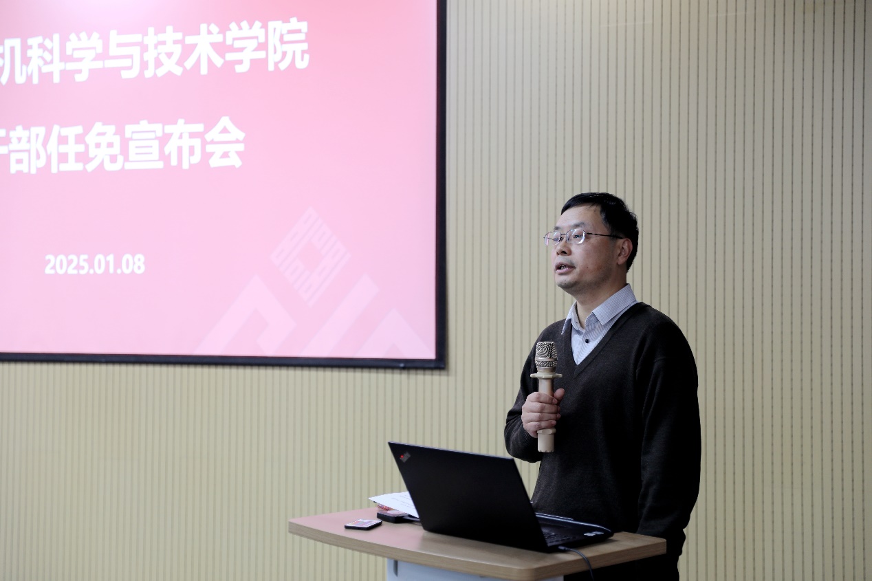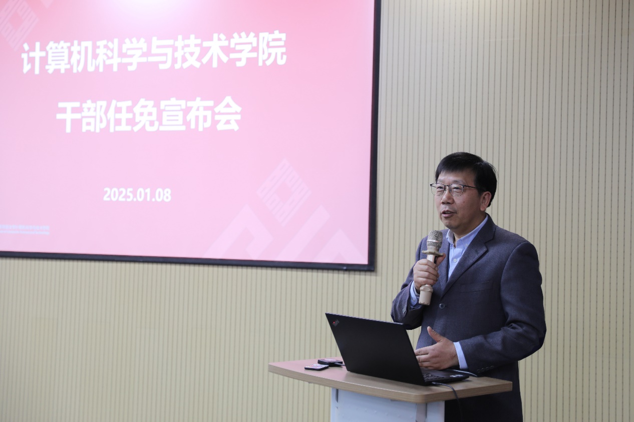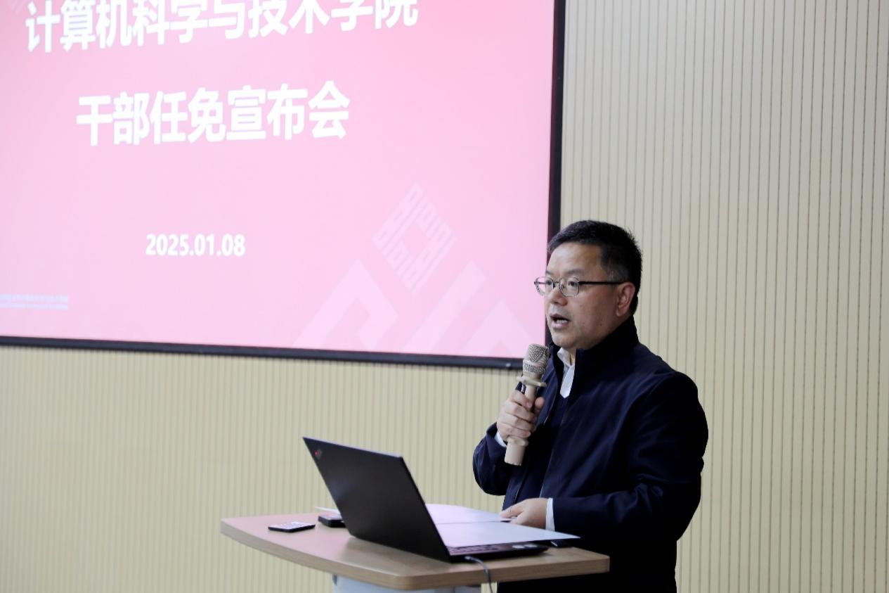 他对周爱民同志挺膺担当表示高度肯定,对张桂戌同志勇挑重担表示由衷感谢,对计算机学院全体师生顾全大局、团结奋进表示高度赞赏。