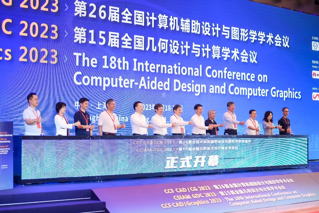此次联合大会包含三大高水平学术会议,即第18届计算机辅助设计与图形学国际会议(CAD/Graphics 2023)、第26届全国计算机辅助设计与图形学学术会议(CAD/CG 2023)及第15届全国几何设计与计算学术会议(GDC 2023)。大会由中国计算机学会、中国工业与应用数学学会主办,威廉官网中国官方网站、上海交通大学、闵行区科委承办。威廉官网中国官方网站视觉与媒体智能团队深度参与承办此次联合大会。马利庄教授任联合大会主席,王长波教授任CAD/CG2023大会主席,何高奇教授任CAD/CG2023程序委员会秘书长,宋海川副教授任GDC2023程序主席,李晨辉副教授任国际会议程序委员会秘书及大会组织主席,谭鑫专任副研究员任大会组织主席,张志忠专任副研究员任宣传主席,谢源教授任竞赛主席,李洋副教授任组织主席,林绍辉青年研究员任课程主席,李晨专任副研究员任海报主席,张青老师任组委会秘书。计算机学院近20名研究生担任大会志愿者。