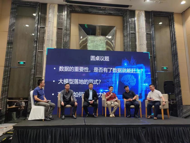 最后,在圆桌会议环节,四位报告嘉宾及来自联通产互AI实验室的负责人胡超共同围绕大模型落地展开探讨,就数据对于人工智能的重要性、大模型的落地是否有范式可循、产学研如何形成合力等问题进行深入分析与交流。