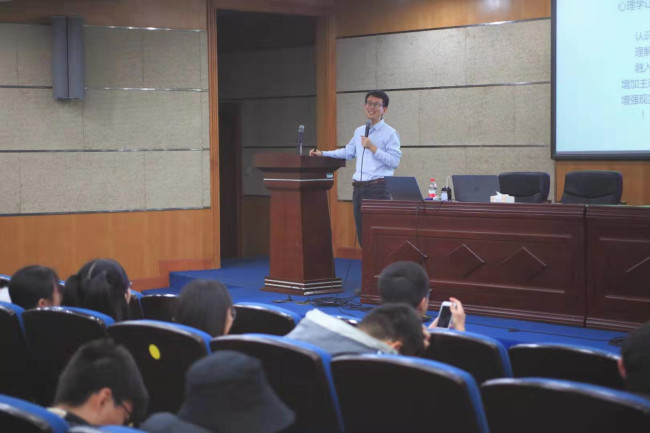 揭牌仪式后,学院幸福e+工作室首场名家讲座正式开始。汪晨波老师以《生活中的心理学》为题发表演讲。汪晨波老师的演讲结合和时下热点与同学们最关心的心理学现象进行了有趣、生动的科普,讲解通过生物、认知与社会三个视角来理解抑郁症的发生机制,从而用认知行为疗法等方式来有效应对等知识,以此来帮助同学们更好地了解自己、理解他人、融入社会、增加主观幸福感,让同学们发现心理学既有趣又有用。整场讲座气氛活跃,同学们积极提问,受益颇多。