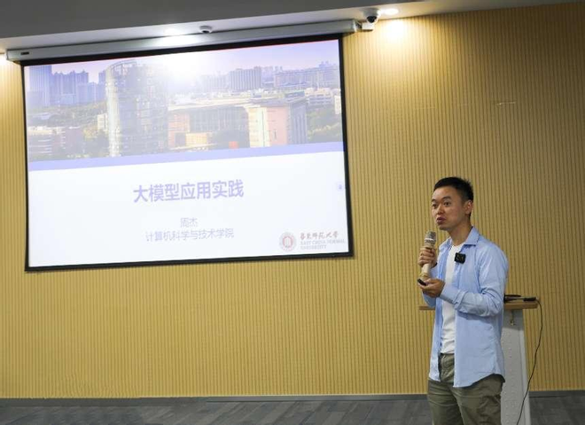 会议伊始,计算机学院青年研究员周杰发表了题为“大模型应用实践”的主题报告。他详细介绍了大模型在智能办公、图像生成、数据结构化等多个领域的广泛应用。周杰分享了通过ChatGPT进行提示工程的实践经验,展示了如何利用大模型实现文档问答、智能搜索、图像生成和视频编辑的多样功能。报告中,周杰列举了多个应用实例,包括Midjourney生成图像、Runway AI的视频编辑工具、腾讯文档智能助手等,展示了大模型在实际应用中的强大潜力。
