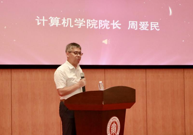 周爱民院长向本科生和研究生新生们表示热烈欢迎。他介绍了华师大的校史及计算机学院的历史沿革,希望同学们在师大校园成为独一无二的自己,在多元与共的世界中,努力做到“打开自我,追寻自我”。他向新生提出三点建议,即善于学习、善于思考和善待他人与自我,勉励新同学们勇于承担起时代重任,积极融入社会发展的历史大潮中,争取达到“乘科技之骐骥,驷创新之玉虬”的境界。