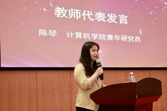 教师代表陈琴分享了自己科研求索路上遇到过的艰辛与挑战,叮嘱同学们既要“埋头做事”,又要“仰望星空”。要敢于突破舒适区,不断突破自我;敢于试错,勇于实践,在学习与工作中不负青春,不负韶华,不负时代。