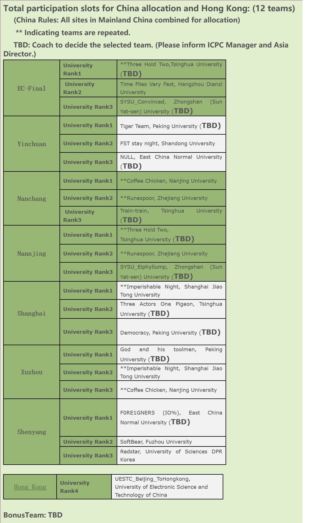 ACM-ICPC亚洲区执行主席公布晋级名单
