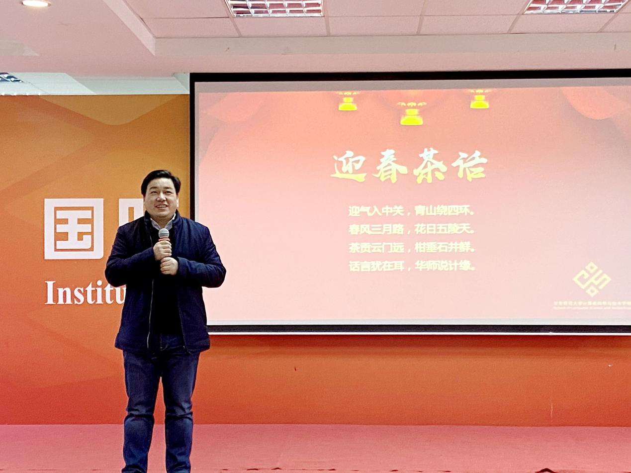 新春佳节来临之际,计算机学院工会组织全院教职工开展新春茶话活动,党委书记王长波、副院长贺樑、副院长陈蕾、党委副书记徐世猛与大家欢聚一堂,辞旧岁、迎新春、道心声、话发展,共同展望美好未来。本次活动由工会主席谢瑾奎和工会委员杨文彧共同主持。谢主席表示珍惜此刻难得的相聚,更即兴赋诗一首,赢得阵阵掌声,对一年来各位老师给予工会工作的支持表示感谢。