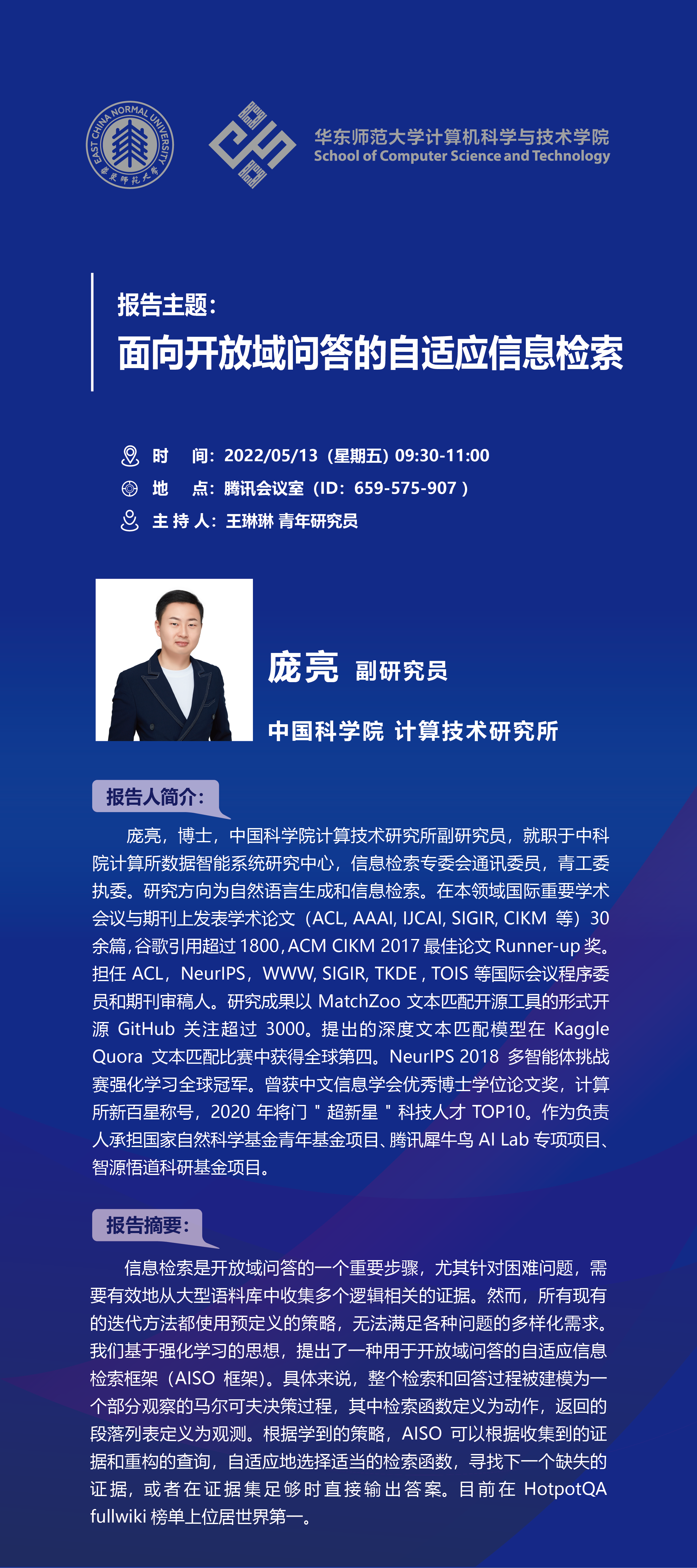 报告人:庞亮 副研究员(中国科学院计算技术研究所)