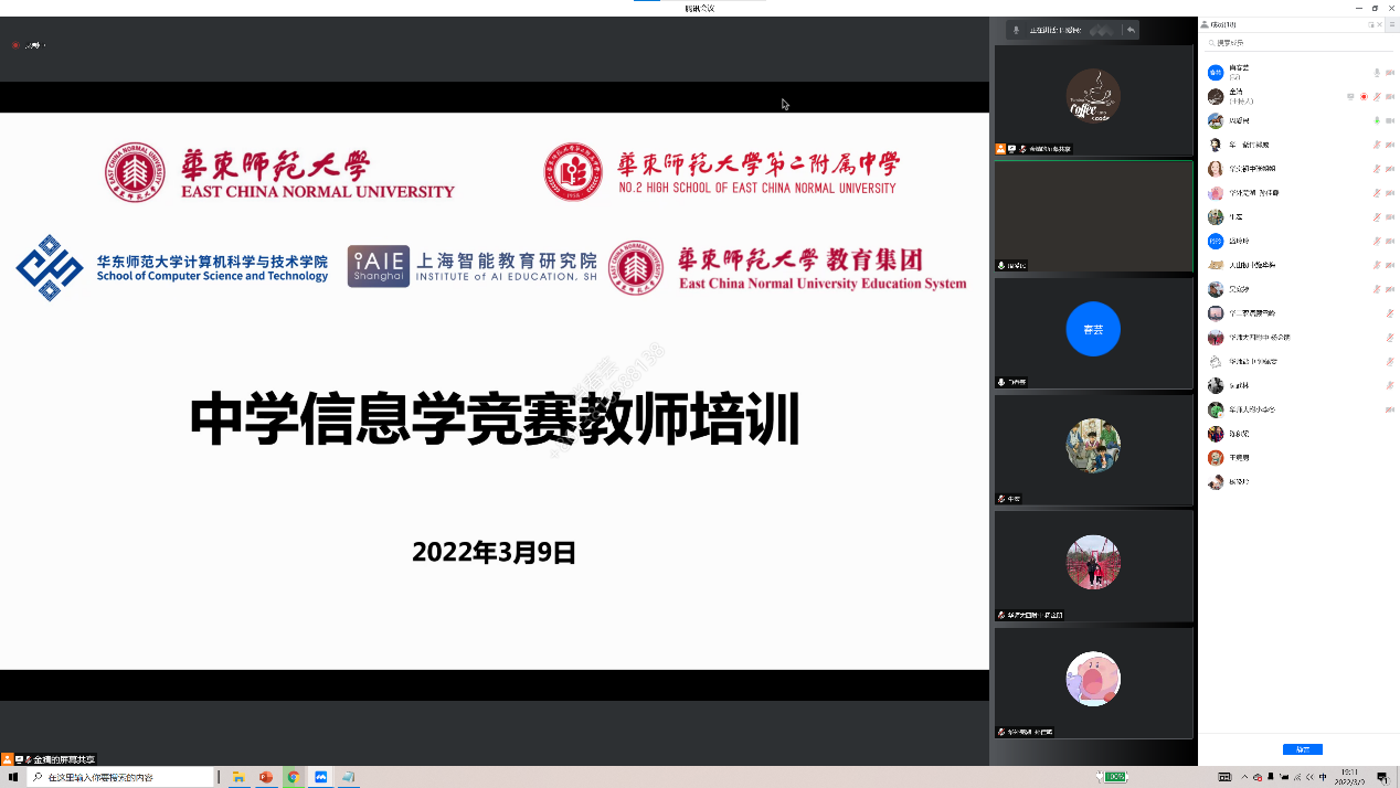 为进一步推进信息技术与教育教学深度融合,积极探索信息技术领域创新人才培养新模式,增强华东师大附属学校信息学骨干教师力量,吸纳更多优秀的青少年投身信息学知识领域的学习,由华东师大计算机学院、上海智能教育研究院肖春芸和周爱民老师牵头组织的信息学师资培训于2022年3月开班。