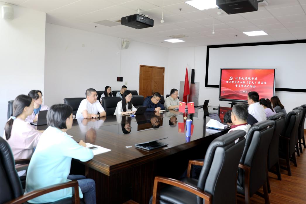 10月16日上午,计算机学院党委召开党委理论学习中心组(扩大)学习会暨支部书记例会,学习习近平总书记最新讲话精神、传达校第十四次党代会精神以及部署近期有关工作。院党委理论学习中心组成员、学院出席校第十四次党代会代表、教工与学生党支部书记、全体辅导员出席会议。会议由院党委书记余佳主持。