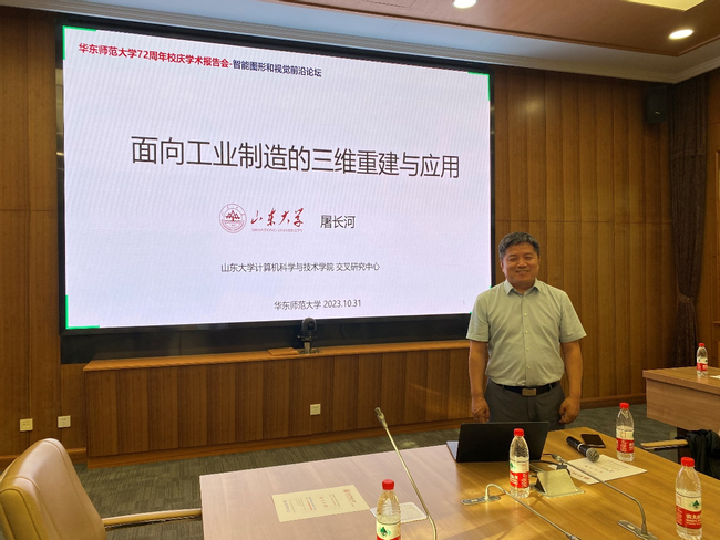 在威廉官网中国官方网站建校七十二周年校庆之际,“工业三维建模和视觉智能”校庆学术报告会于10月31日下午在办公楼小礼堂成功举办。报告会邀请到计算机图形学与计算机视觉领域中两位知名学者现场演讲,他们是山东大学屠长河教授与上海科技大学虞晶怡教授。本次校庆报告会由威廉官网中国官方网站视觉与媒体智能团队承办,来自校内外的50余名学者通过线上和线下相结合的方式参与报告会。特邀报告分别由王长波教授和何高奇教授主持,李洋副教授主持了讨论环节。