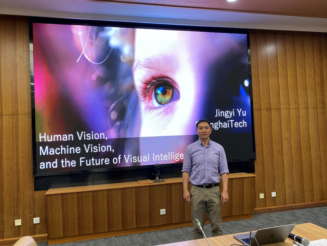 第二场特邀报告是上海科技大学虞晶怡授所作的“Human Vision, Machine Vision, and the Future of Visual Intelligence”。虞教授从人工智能和计算机视觉的起源快速进入主题,展示了基于人类视觉的理论在艺术创作、人工智能研究、相机设计等多个领域的应用实例。接下来,虞教授将自己的研究工作以2015年为界,分为两个阶段,分别聚焦Computational Camera和人眼视觉与机器视觉的差异。在第一阶段,虞教授展示自己在光场相机方向的工作积累,包括运动去模糊以及条形码扫描等。在第二阶段,虞教授深入介绍了机器视觉和人类视觉在机制和结果上表现出的显著差异,分析了这种差异对各种视觉计算任务的益处;介绍了人类视觉局部聚焦对成像的作用,以及对生成的作用。最后,虞教授展望了三维大模型的发展前景和技术挑战。