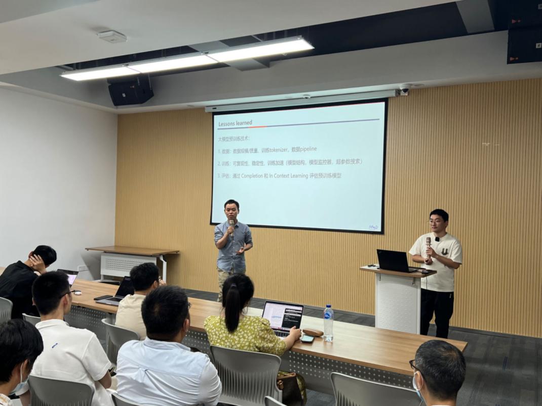 在互动交流环节,由周杰老师主持,参会者们积极提问,问题涵盖了开源框架的选择、训练所需的资源估算、不同领域数据的处理方式、如何保障数据质量、应对训练中的灾难性遗忘、优化数据迭代策略、大模型在医疗领域的应用以及新兴的合成数据等热门且关键的议题。田老师耐心解答,与大家共同探讨,现场思维的火花不断碰撞。