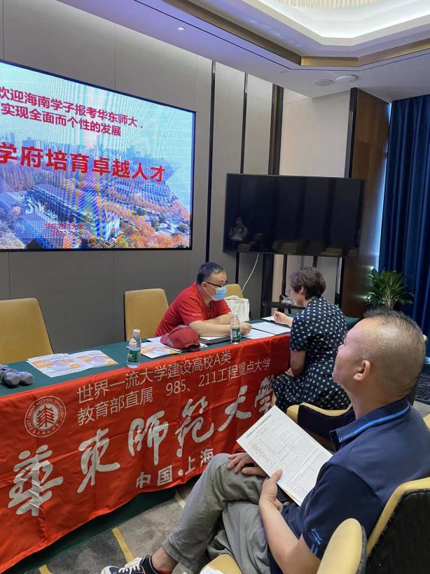 海南省招生组成员金健、李晨辉和赵婧媛在海南省文昌中学、嘉积中学开展了线下驻点咨询活动,同时面向海口市和万宁市的中学在海口荷泰酒店和万宁迎宾馆开展了酒店驻点咨询。