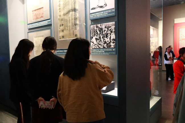 参观过程中,同学们认真听取了讲解员的讲解,仔细观看了展览的图片、文物和影像资料。同学们被革命先烈的事迹深深触动,时不时驻足矗立在文物展示墙前,瞻仰先烈雕像,为先烈们情真意切又具崇高使命信念的书信动容。