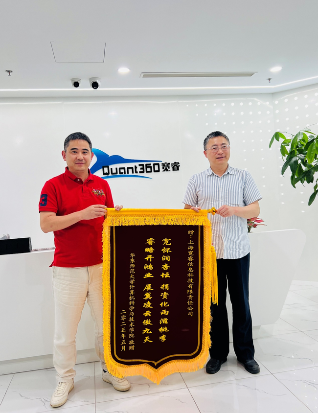 为了表达对宽睿科技捐资助学的感激之情,学院向公司赠送锦旗,题字为:“宽怀润杏坛,捐资化雨滋桃李;睿略开鸿业,展翼凌云傲九天”。