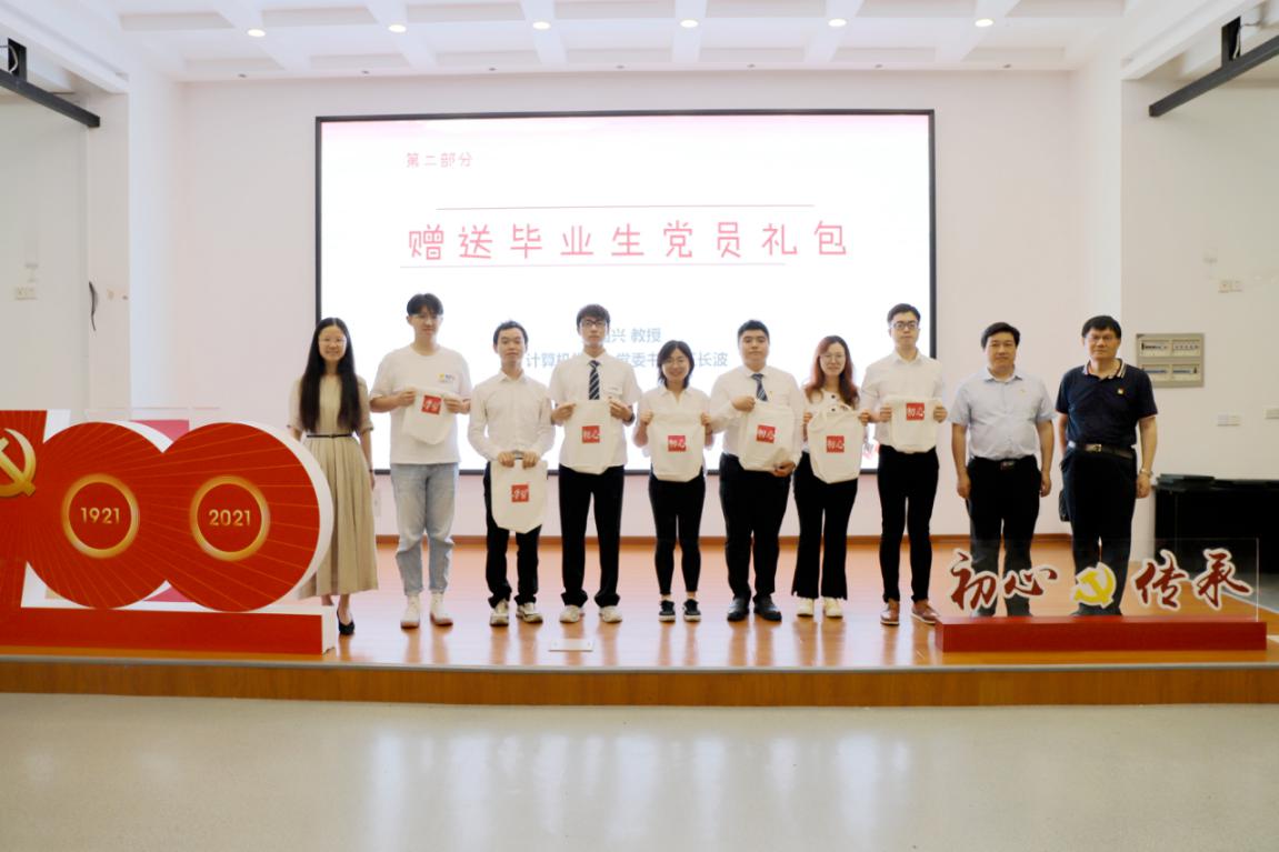 学院党委书记王长波、副院长陈蕾和黄老师共同为毕业生党员代表发放纪念礼包。
