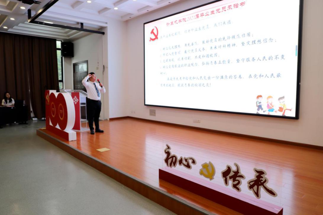 最后,在博士生党员代表毛杰文的带领下,全体毕业生党员庄重地宣誓,时刻牢记党员身份,将自己的理想与国家的发展联系在一起,为国家和社会做出更大的贡献。