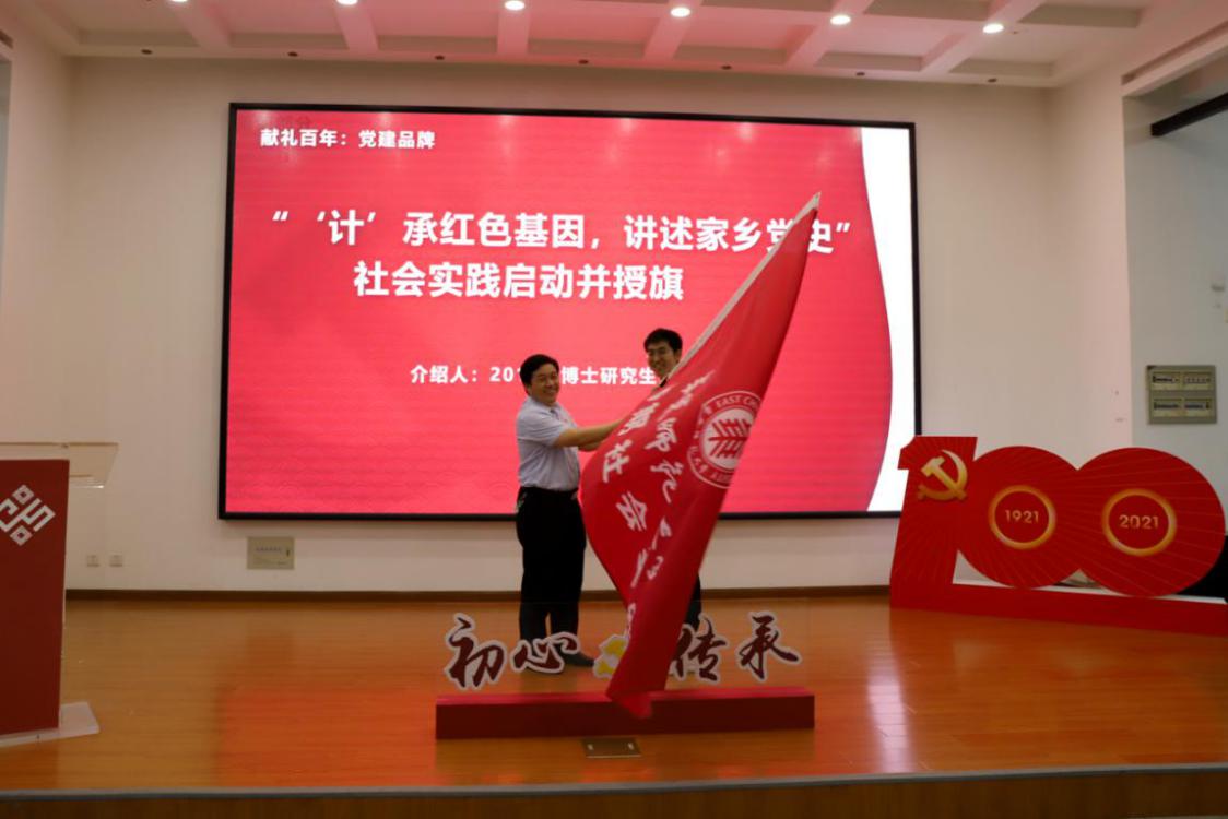 ‘计’承红色基因,讲述家乡党史”,今年暑假,学院团委将以此为主题组织学生党员、入党积极分子、优秀团员等94位学生,针对家乡有历史记载的党史故事、党史人物,按照华中、华北、华东、华南、西北、东北、西南七个区域分11组开展田野考察,收集文字、照片、音视频,运用计算机与人工智能技术开展社会实践。博士研生党员吴兴蛟代表团队发言,介绍了各组选题,并表示将用计算机人的方式来书写青春的时代答卷。王长波代表学院党委为团队授旗,活动正式启动。