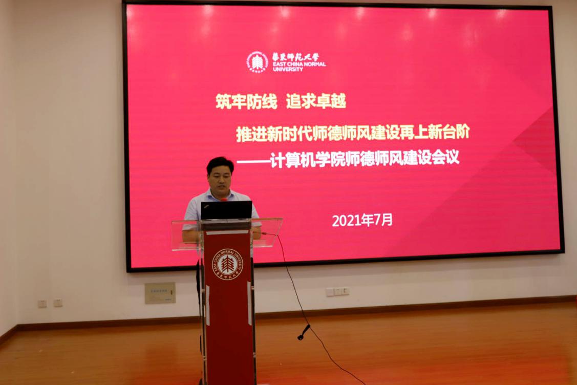7月2日,计算机学院全院教职工大会在物理楼二楼报告厅举行,工会主席谢瑾奎主持会议。