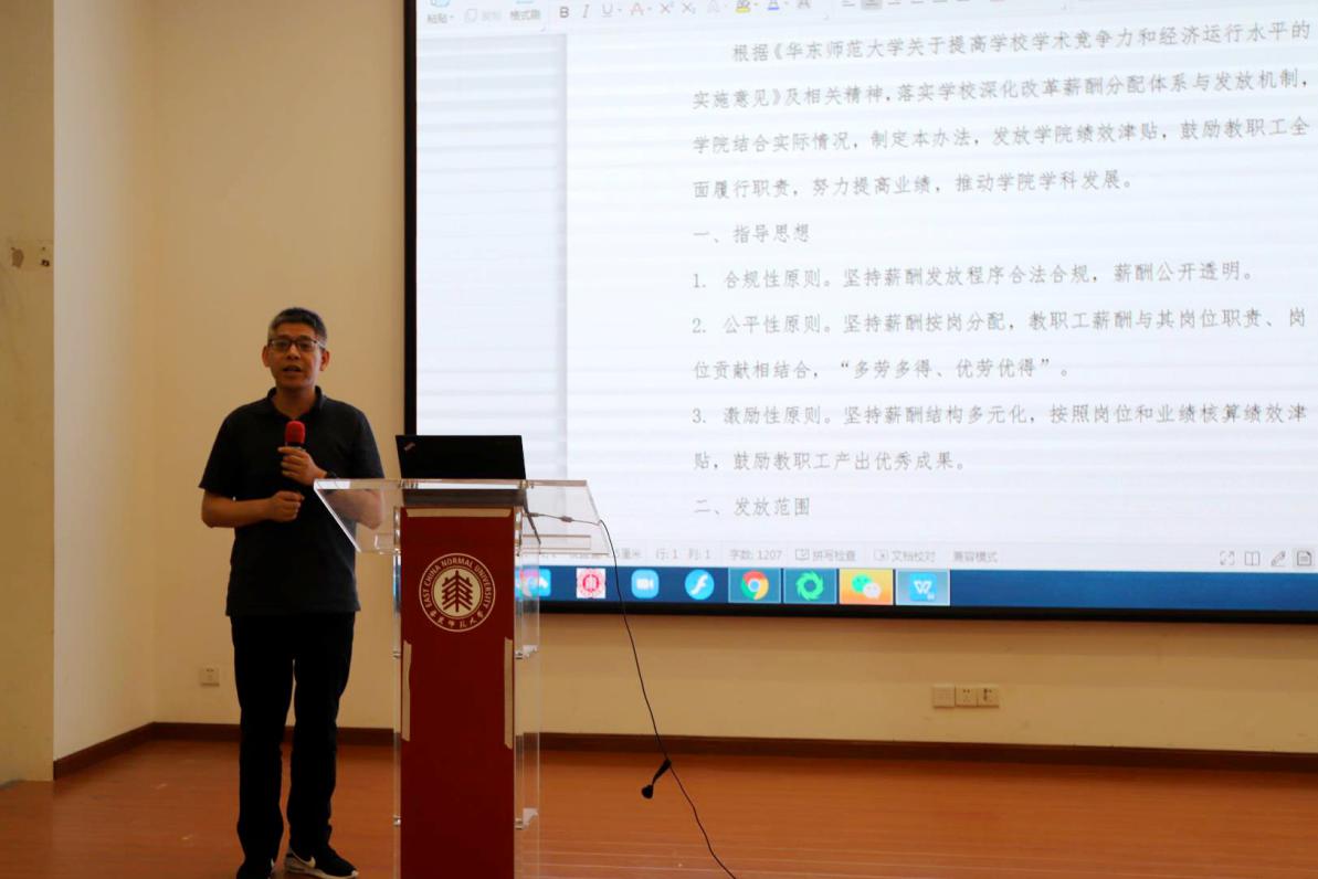 副院长(主持工作)周爱民介绍了学院的场地装修计划,同时针对近期财务报销中的问题进行提醒。副院长贺樑总结了学院上半年的科研开展情况,并督促青年教师要“走出去,请进来”,学院也会对相关科研活动给予支持。
