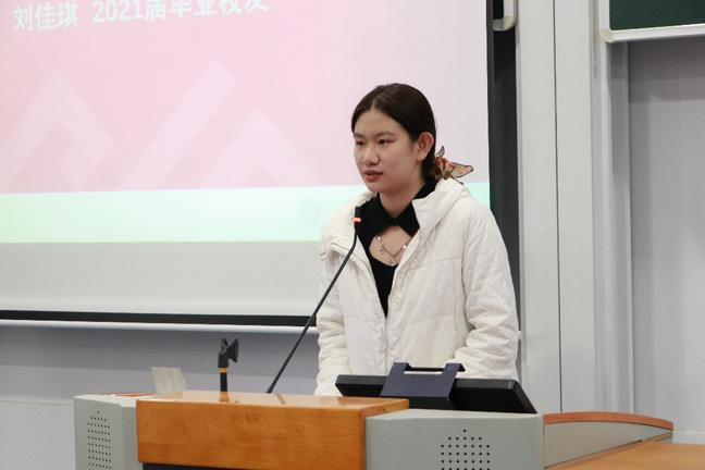 2021届毕业校友刘佳琪分享了求职经验。刘佳琪通过自身经历解答了同学们在求职过程中常见的疑惑并分享了自己的工作日常,告诫大家求职的过程中更重要的是展示自己的能力而非成就,做到信心充足,不急切,不浮躁。