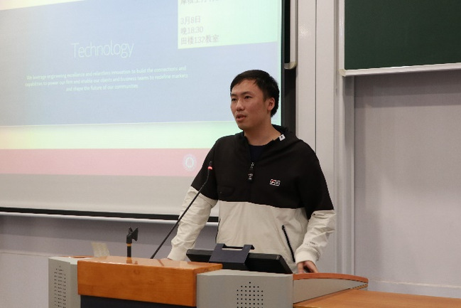 最后,来自摩根士丹利的校园招聘专家和信息技术部工程师讲解了计算机专业的就业方向和面试技巧。两位从企业的视角分析了“缓就业”在求职中的劣势,着重强调自我介绍和反问两个环节在面试中起到的作用,指出求职是企业和应聘者双向选择的机会,鼓励同学们知行合一,边做边想,多进行尝试。
