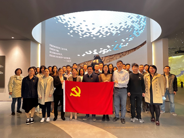 教师党支部首先参观了长风生态商务区规划展示馆,通过沙盘,党员们了解了长风生态商务区的整体布局和规划。长风生态商务区的“生态”转型发展始于2003年,围绕环境生态、人文生态、建筑生态、产业生态、管理生态的理念,逐步建设成为有影响力的现代服务业集聚区,被上海市委、市政府誉为“上海老工业区成功转型的典范”。