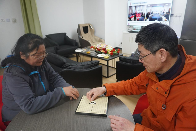 老师们在教工小家打球、下棋