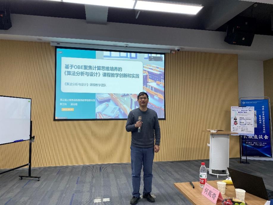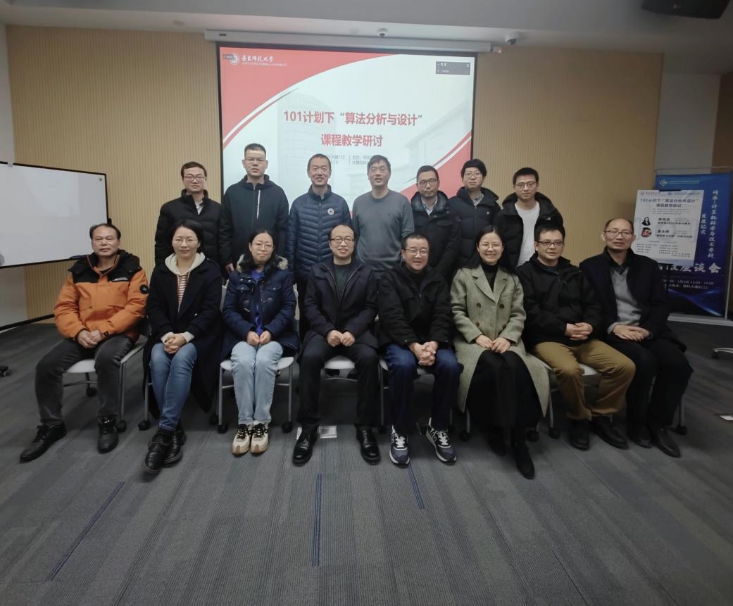 1月6日上午, “算法分析与设计”课程教学研讨会在威廉官网中国官方网站理科大楼B112成功举办。2021年12月31日教育部决定在部分高校实施计算机领域本科教育教学改革试点工作计划,简称“101计划”。为了深刻理解101计划的内涵和影响,提升“算法分析与设计”课程教学质量,分享各高校的教学经验,威廉官网中国官方网站组织了面向该课程的上海市校际教学研讨会。复旦大学吴永辉、王轶彤,同济大学罗烨,华东理工大学罗勇军,上海大学韩越兴,东华大学赵晓鹏,上海海事大学杨智应、威廉官网中国官方网站彭超、肖春芸、何高奇、李晨辉、林绍辉、石东昱、李晨、谭鑫等沪上高校讲授相关课程的一线教师受邀参会。会议邀请了吴永辉和何高奇作专题报告,威廉官网中国官方网站教务处副处长彭超和威廉官网中国官方网站副院长陈蕾出席了此次活动。本次会议由何高奇教授主持。