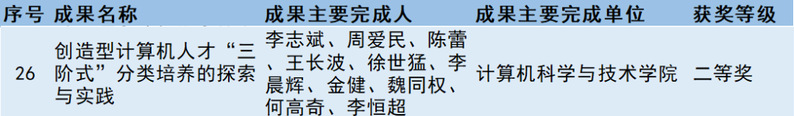 成果响应国家人才发展战略,紧跟国家对卓越计算机人才的需求导向,聚焦新时代卓越计算机人才的三个关键特征,即综合素质高、个性化发展显著、前沿创造创新能力强,改革人才培养模式,卓越育人成效明显。