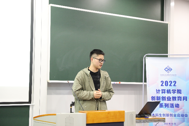 最后,学院教师董道国以《出道即巅峰——大学四年的技术大牛养成计划》为主题,为同学们带来了AI俱乐部创新创业能力培养专题讲座。董道国老师有多年的创业经验,他从企业招聘和人才培养的角度切入,为同学们作了详尽的职业规划,勉励同学们学精编程语言,掌握完整的应用技术栈,多参与可持续的项目,努力提升自己的文字和口头表达能力。