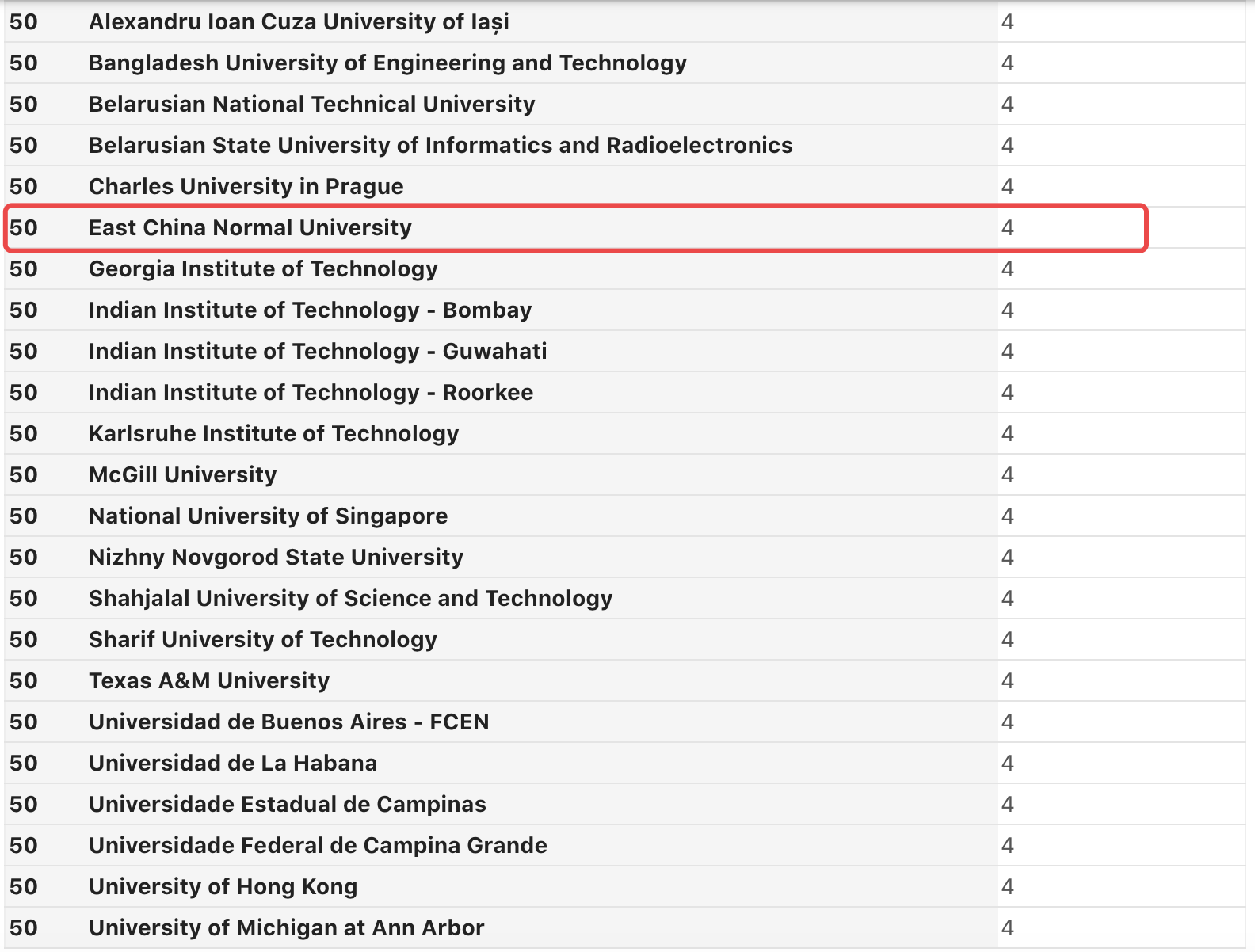 华东师大队伍在总决赛排名50