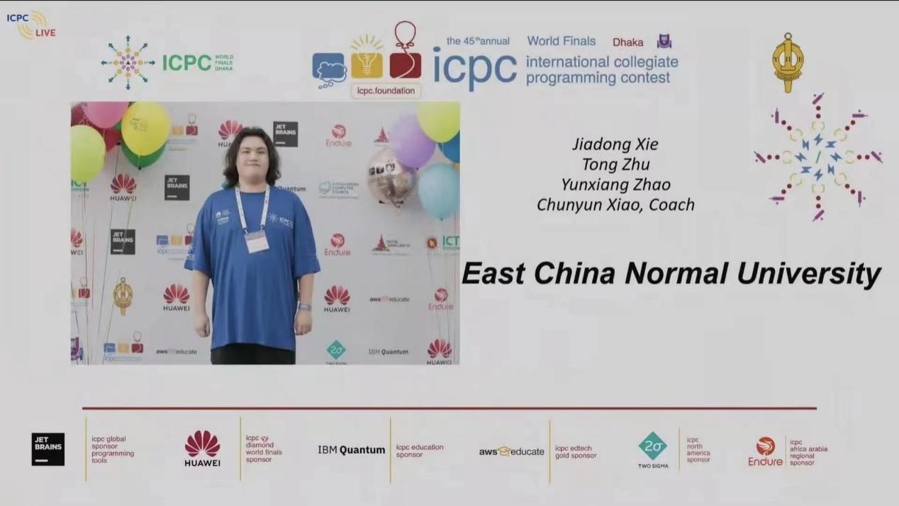 本届全球总决赛是谢嘉东、赵云翔、朱桐组成的队伍连续第二年晋级ICPC全球总决赛,也是华东师大的队伍第六次晋级全球总决赛。