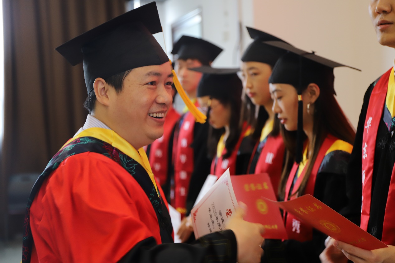 学院领导及教授代表为参加线下毕业典礼的部分学生代表拨穗并颁发学位证书