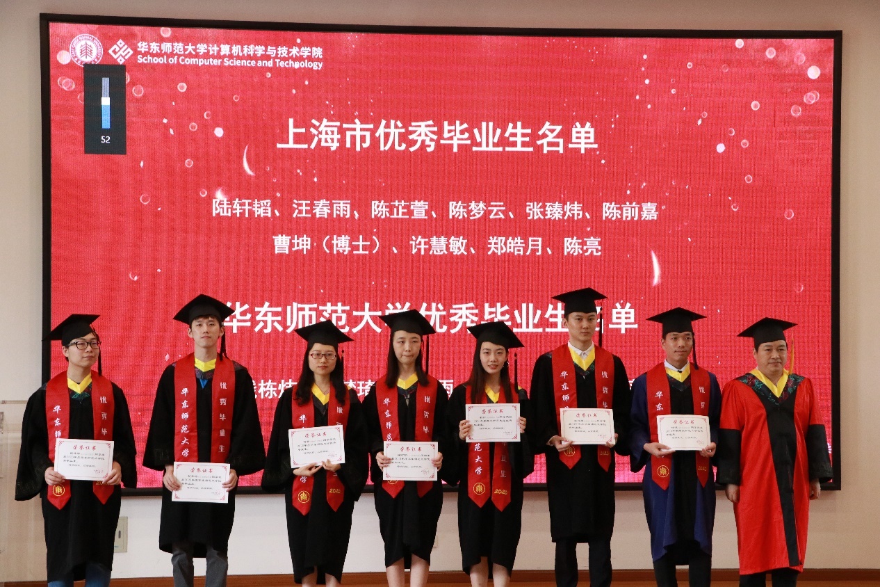 学院党委书记王长波为上海市、华东师大优秀毕业生颁发证书
