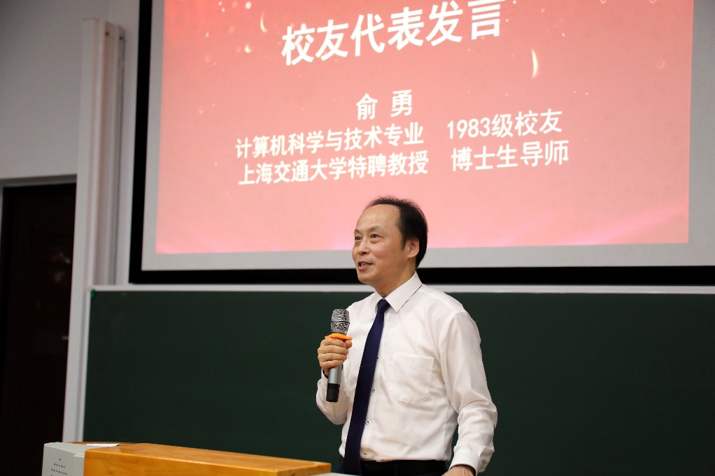 1983级硕士校友俞勇教授从自己的求学经历以及从教三十余年的感悟出发,告诉新生们取得成功需要经历的三个阶段:认识自己、迭代自己、成就自己,希望同学们深刻认识到自己在为谁而学,希望家国情怀清晰地烙印在每个人心中,完成每个中国人的铸魂。