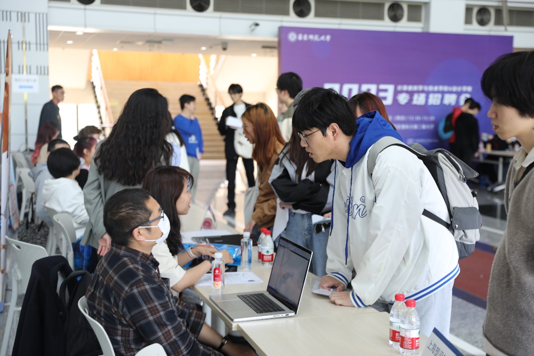 4月27日下午,威廉官网中国官方网站和设计学院联合实习就业招聘会在普陀校区理科大楼二楼大厅顺利举办。此次小型招聘会旨在为学生提供更多实习和就业的机会,增强学生的职场竞争力。