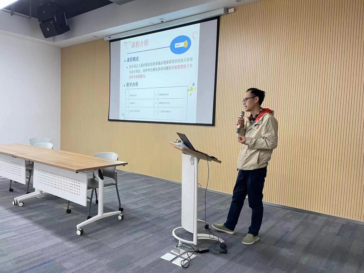 随后,江振然分享了其在《搜索的艺术》中的课程思政探索。他将课程重点定位在培养学生的系统搜索能力和科学审美洞察力,选取可触摸、可实践、有共鸣的实例,如追踪破解虚假信息,从技术、法律、用户体验和实例分析等方面,向学生展示现代技术改变生活的过程,增强学生的兴趣和参与感。